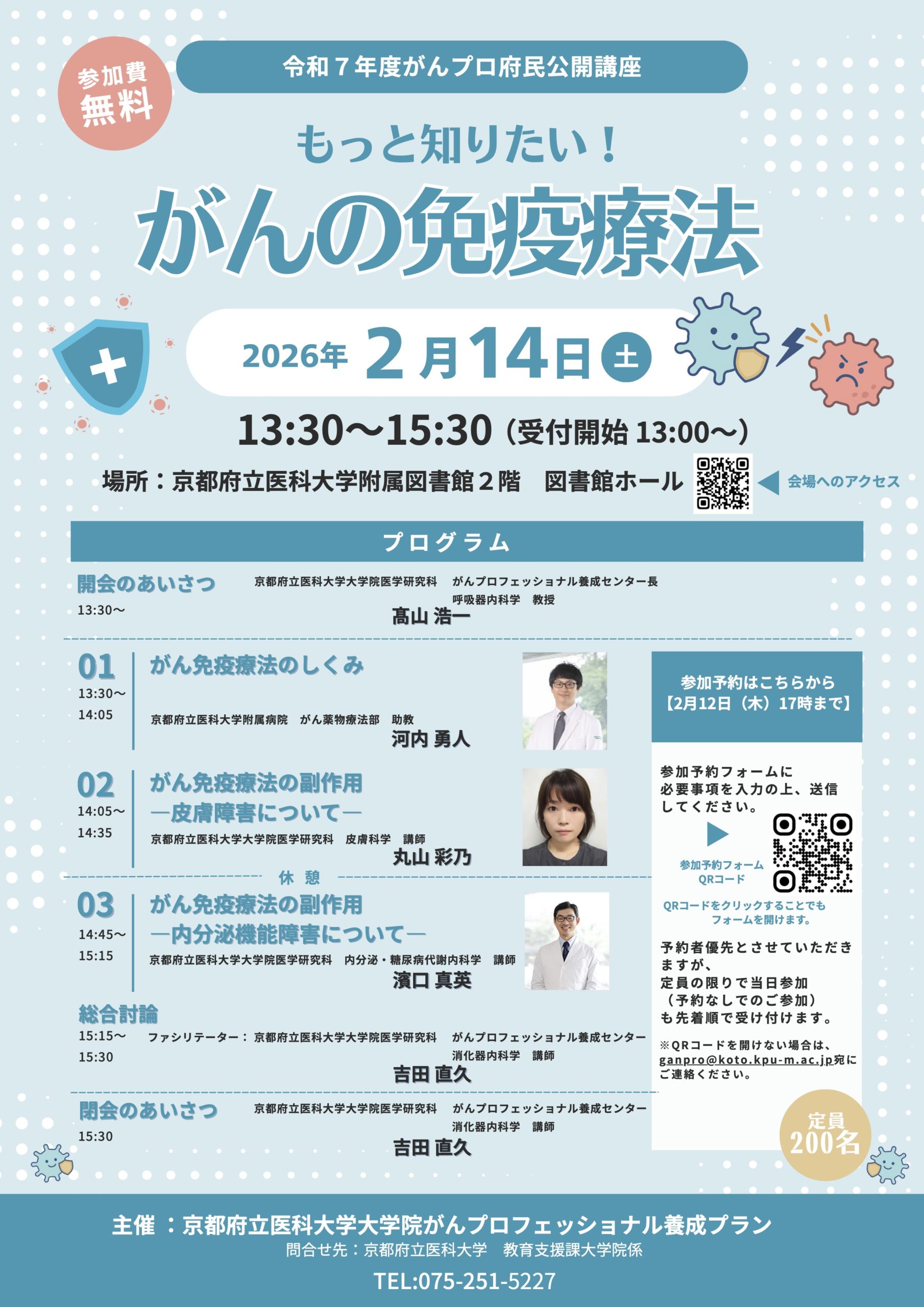 また、皮膚科の丸山先生、内分泌・糖尿病代謝内科の濱口先生からそれぞれ免疫に関連した皮膚障害、内分泌障害についてご講演いただきます。