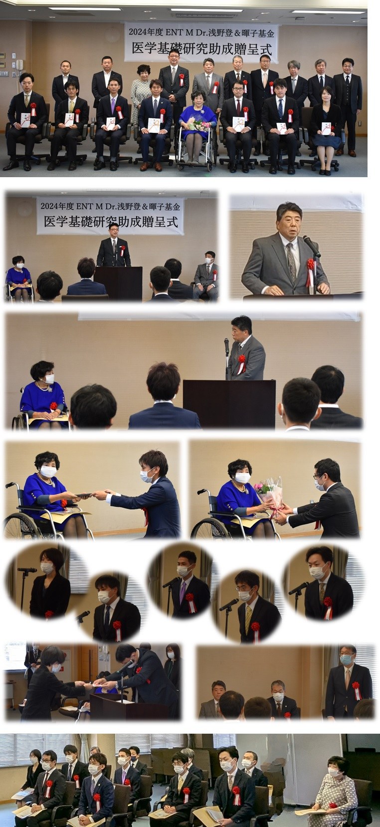 コメント:助教の吉村です。この度、2021年度ENT M Dr.浅野登&暉子基金の医学基礎研究奨励金に「KRAS肺がんにおけるRAF/MEK阻害薬耐性の機構解明とその克服に向けた研究」という課題で選定いただき、11月28日に開催された研究助成贈呈式に参加させていただきましたので、ご報告させていただきます。 本年度は27件の課題の中から7件への助成が決定されましたが、私の課題がご評価いただけたようでした。今回頂戴しました奨励金を活用し、肺がん患者さんに有効な治療を届けるためにも研究を続けていきたいと考えております。今後とも引き続きよろしくお願いいたします。