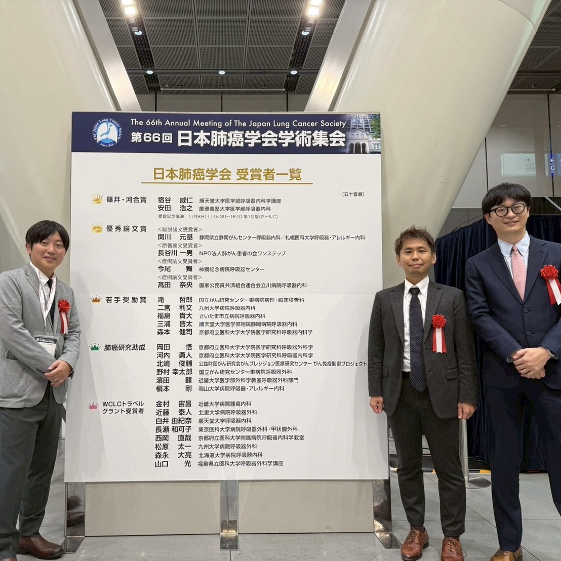 西岡先生・河内先生・森本先生が第66回日本肺癌学会学術集会にて受賞!|2025年11月