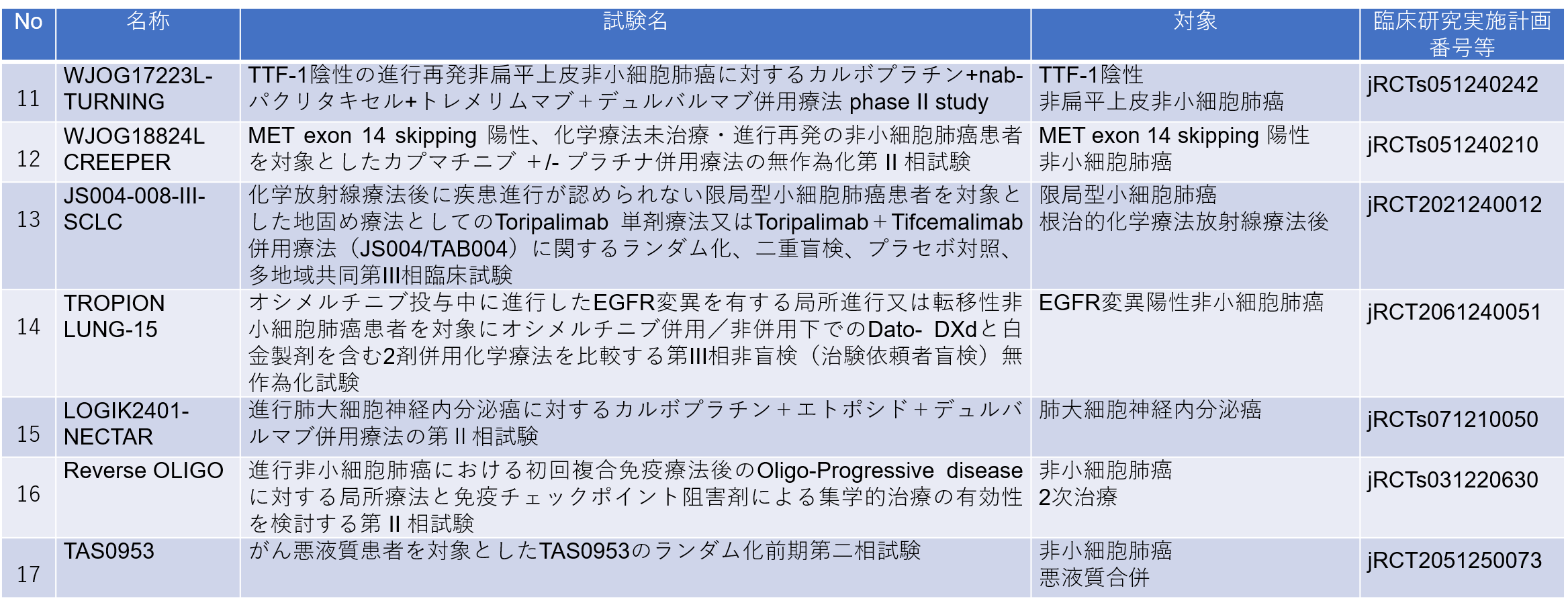当科で現在実施中の治験・臨床試験内容